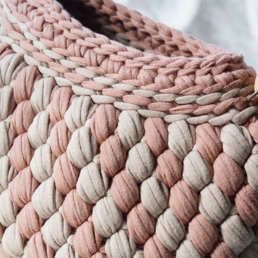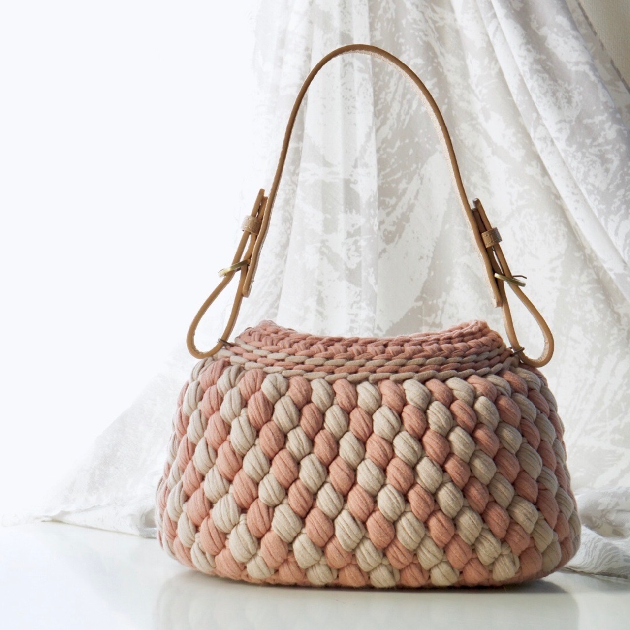春らしい玉編みバッグです。肩に掛けて持つタイプのワンハンドル。