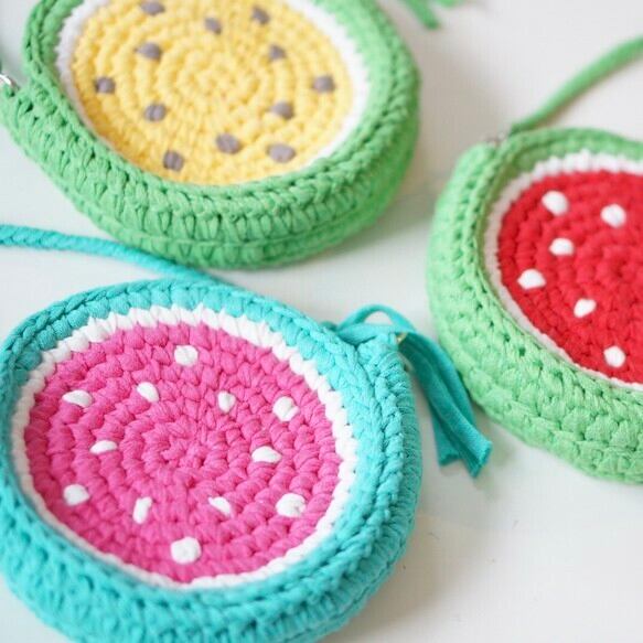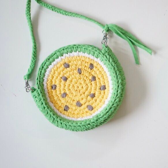 バッグ ショルダーバッグ キッズショルダー ポシェット ポップ キュート キャンディカラー ビタミンカラー かわいい おしゃれ ゆめかわ スイカ すいか 西海岸 ハンドメイド ギフト プレゼント 誕生日 入学祝い 進級祝い お祝い 贈り物 人気 マリン 夏 サマー 海 女性 女 女の子 ガール レディース ズパゲッティ Tシャツヤーン ファブリックヤーン アップサイクルヤーン エコ